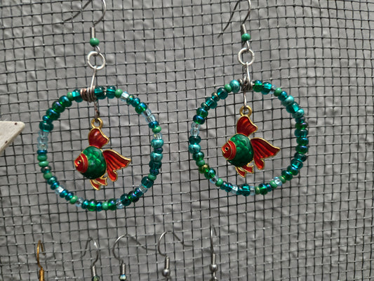 Beaded Bubble Fish Charm Earrings